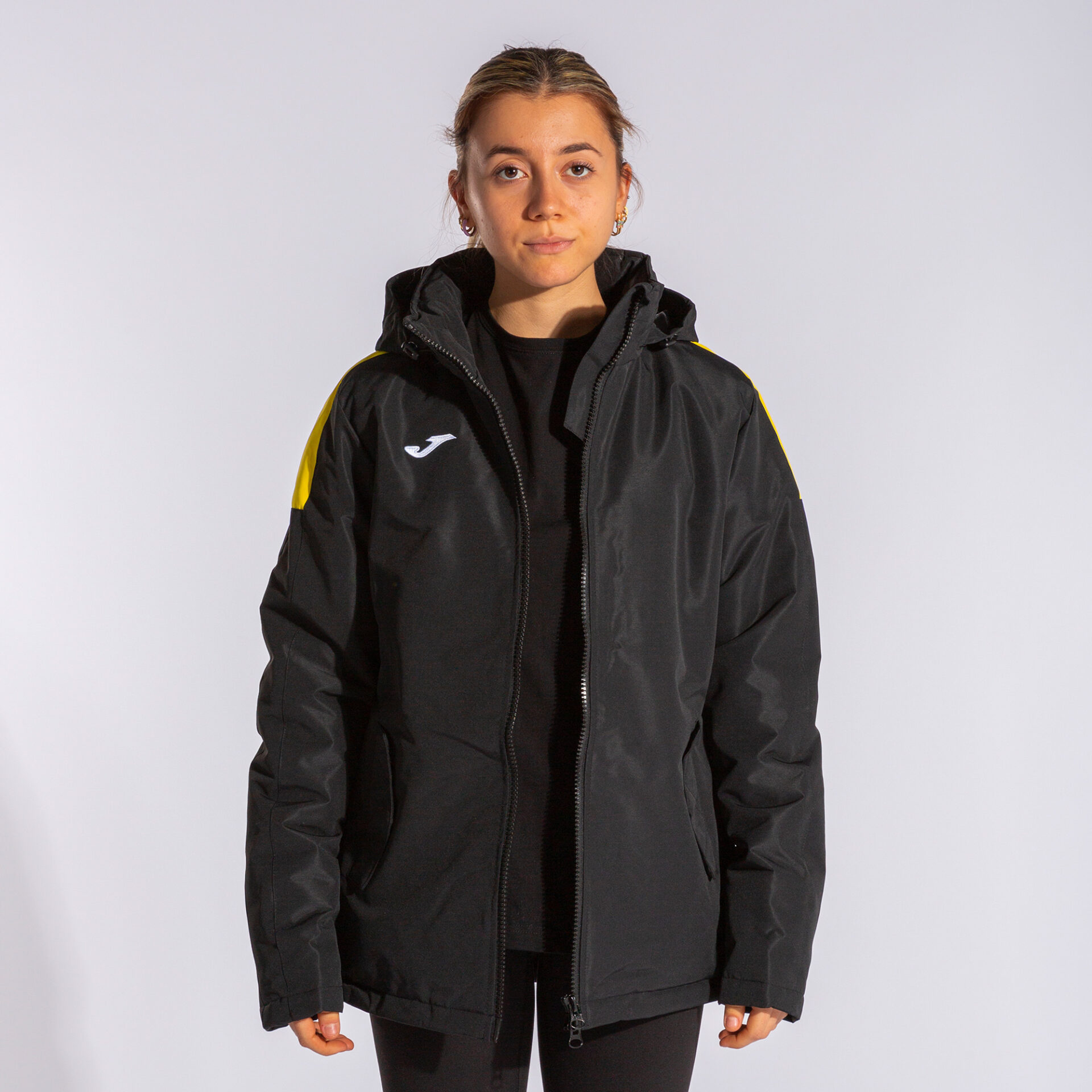 Abrigo de mujer para entrenamiento. Confeccionado con tejido ligero y resistente al agua, este anorak está concebido para entrenar con tiempo fresco y lluvia ligera. La situación climatológica no será un impedimento para que hagas deporte. En el interior, cuenta con forro polar para ofrecer calidez.