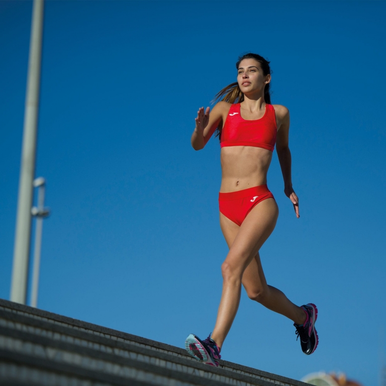Incorpora costuras Flatlock o planas para evitar cualquier rozadura. El tejido roza en zonas sensibles como resultado del movimiento y puede provocar molestias, pero con este tipo de costuras el confort estará asegurado. Igualmente, tanto el tejido como el corte permiten que la atleta se mueva con total libertad y que cada zancada sea más amplia.