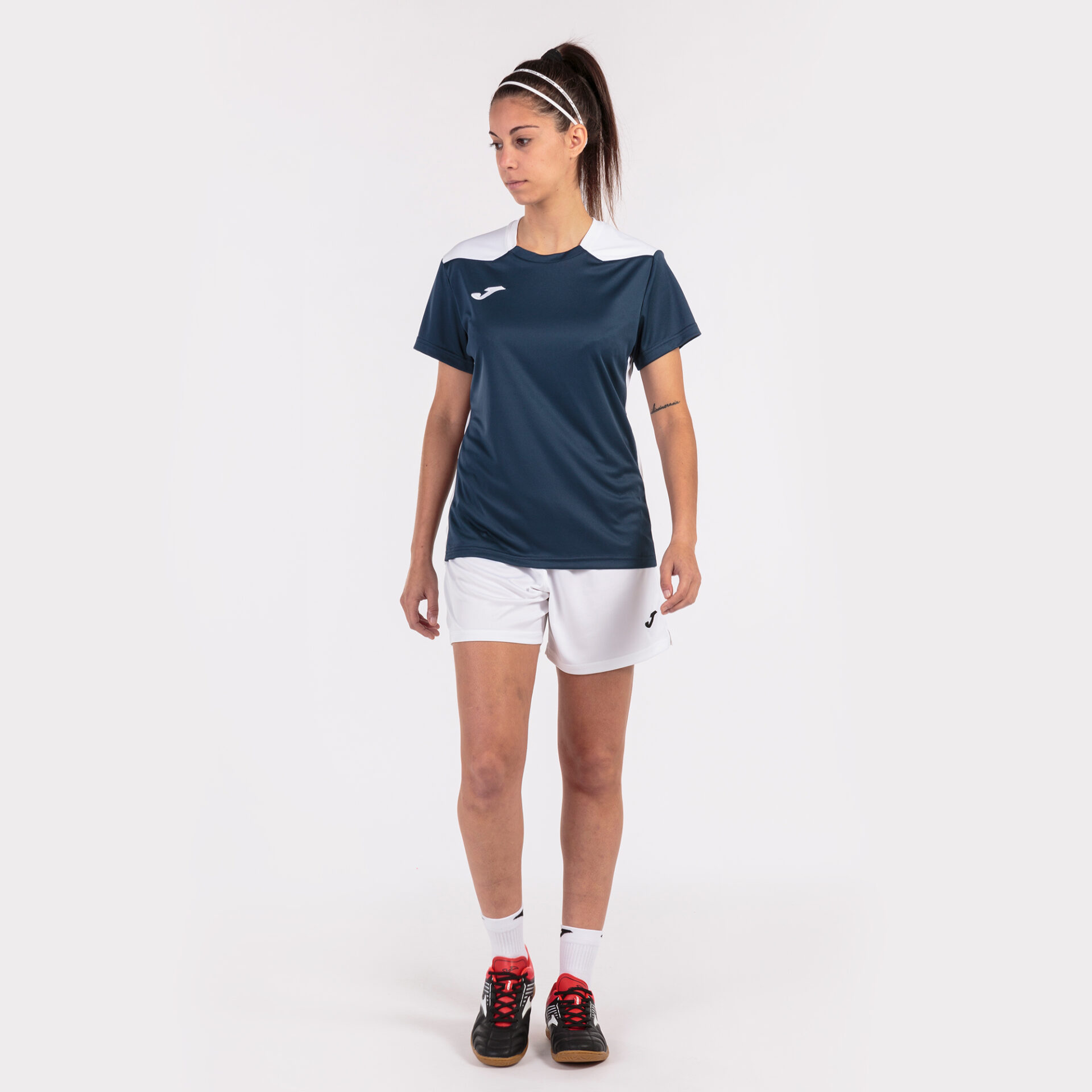 Camiseta de manga corta de mujer. Modelo de camiseta técnica diseñado para entrenamiento y competición en fútbol y fútbol sala. Incorpora la mejor tecnología para que la futbolista lo dé todo en el terreno de juego. Con corte que facilita la libertad de movimientos y con tejido que contribuye a la evacuación del sudor.