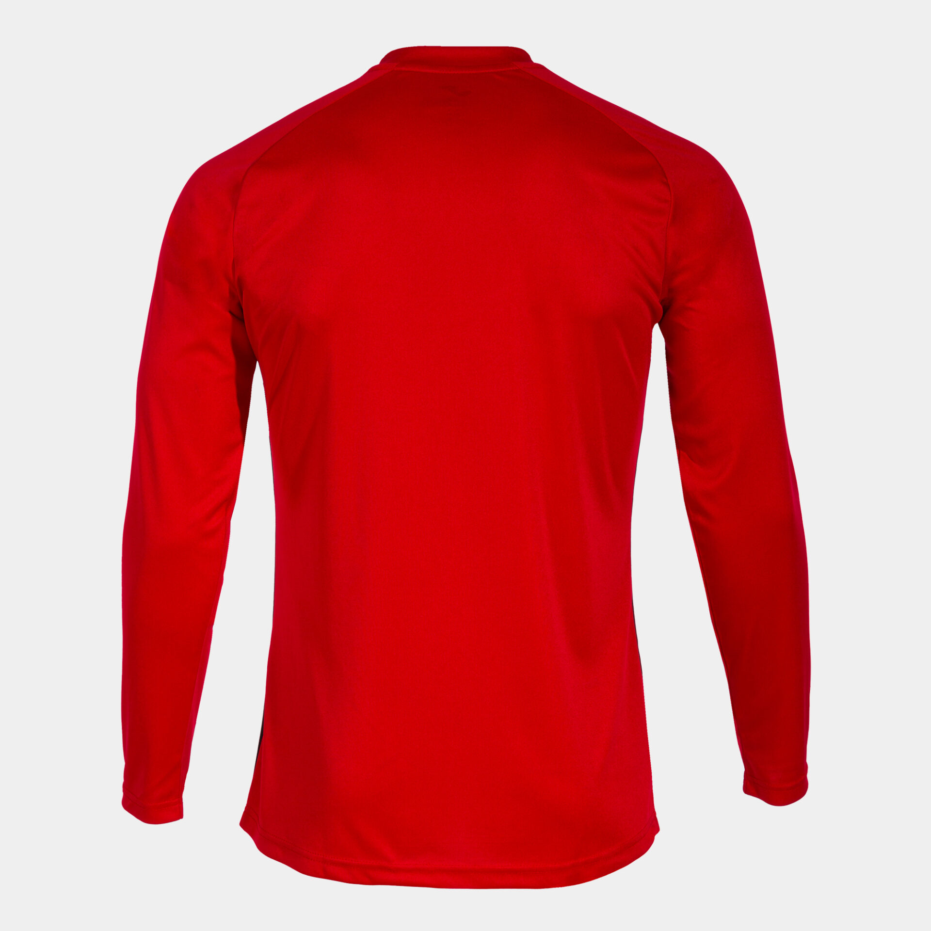 Camiseta de manga larga con rayas en el frontal. Las mangas de tipo raglán y el cuello en pico favorecen la libertad de movimientos y la comodidad durante la práctica deportiva.