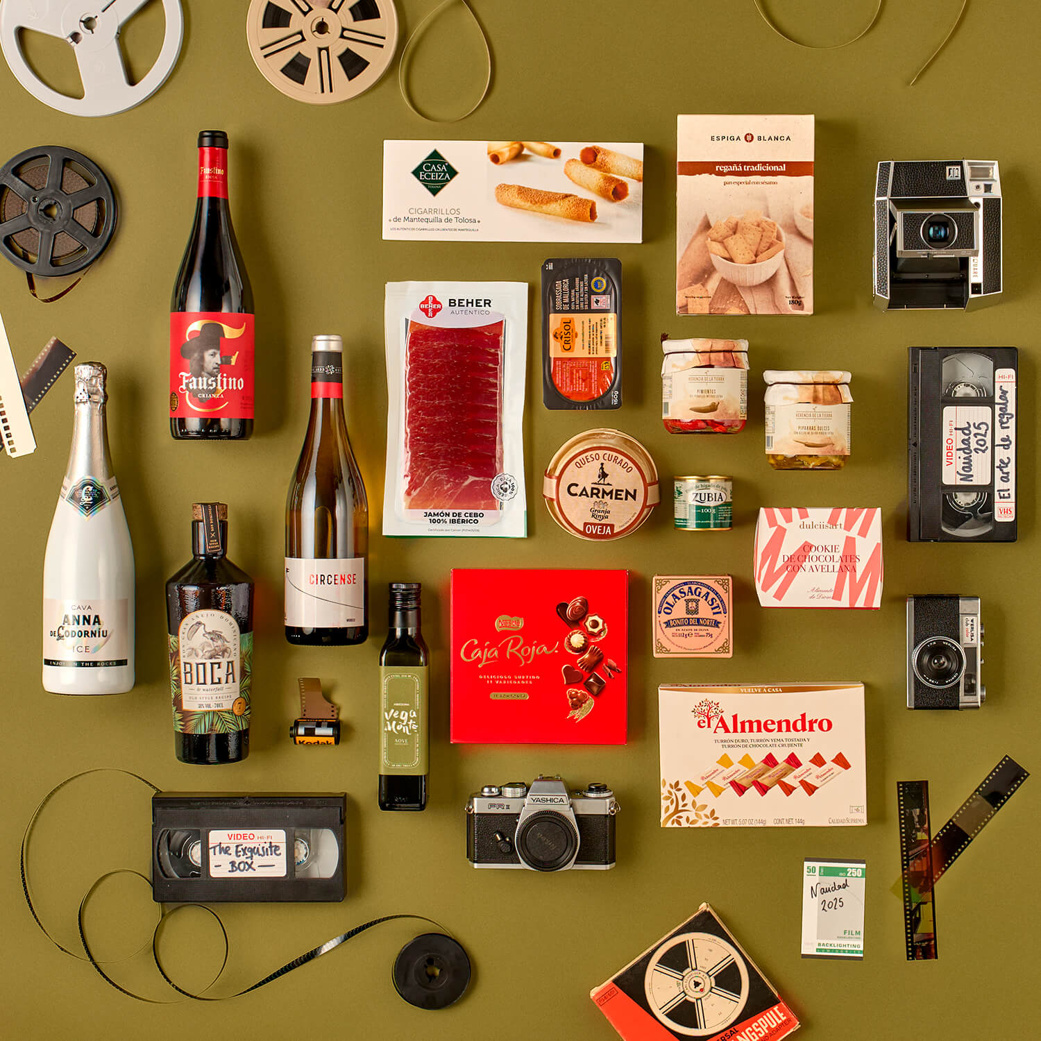 Lote variado con 22 artículos seleccionados de charcutería, vinos, dulces y conservas.