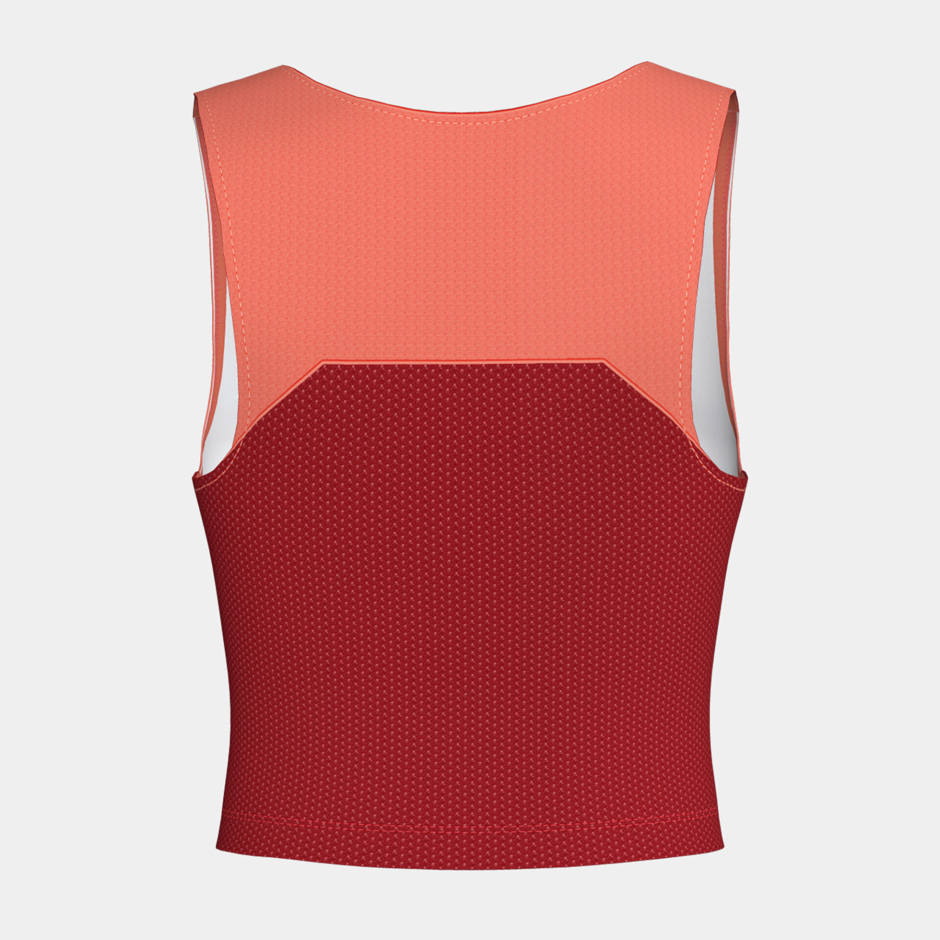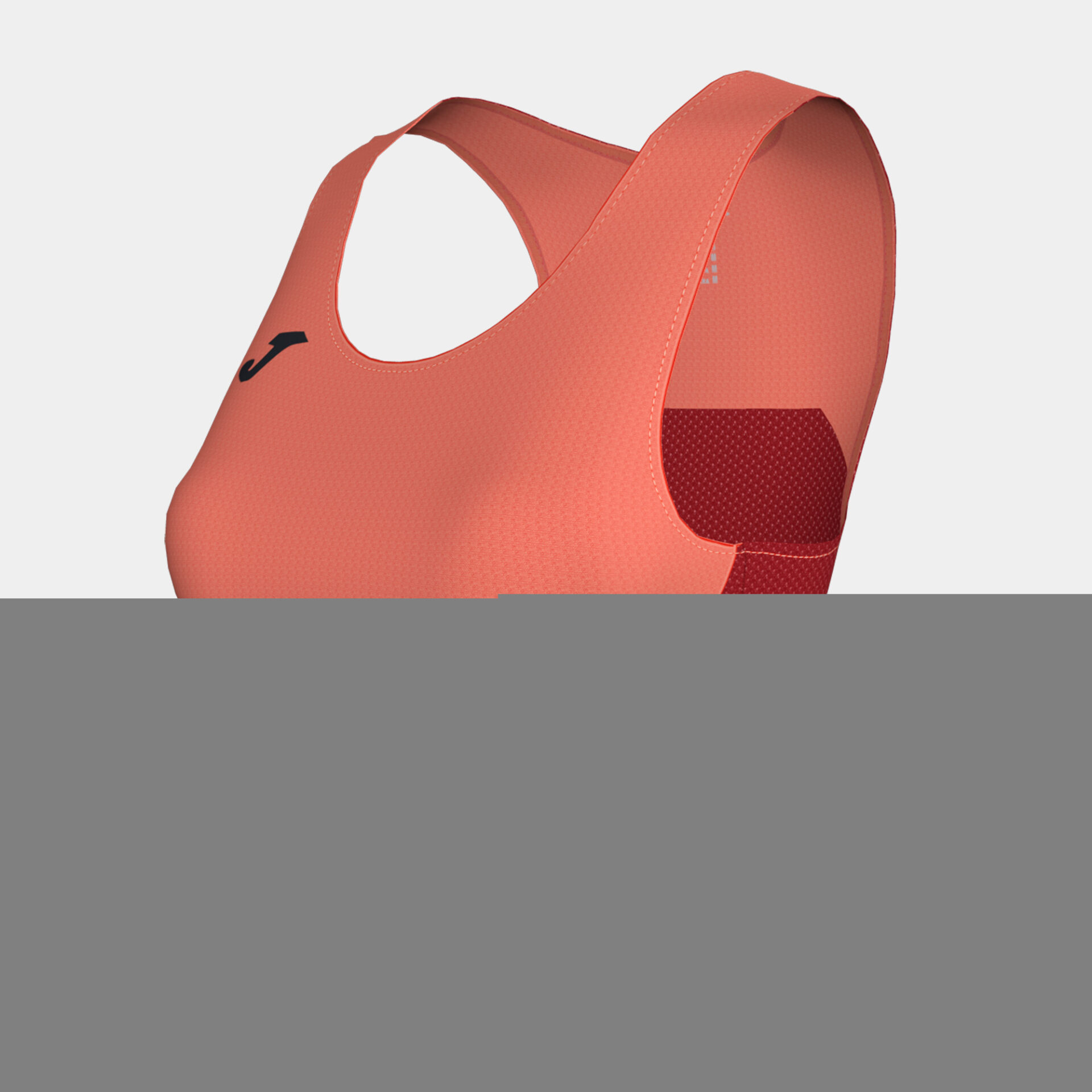 El top presenta cuello redondo para ofrecer más comodidad. Con vivo elástico en esta zona y en los tirantes anchos para conseguir un ajuste óptimo.